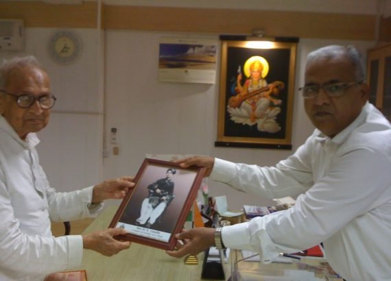 મા.શ્રી પ્રસન્નવદન મહેતાને અર્પતા ભાવનગર વિશ્વ વિદ્યાલયના કુલપતિ શ્રી પ્રોફે. બી.એલ. શર્મા.
