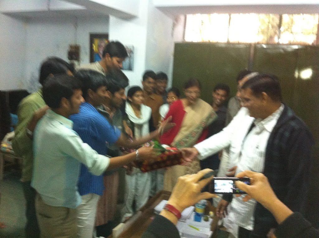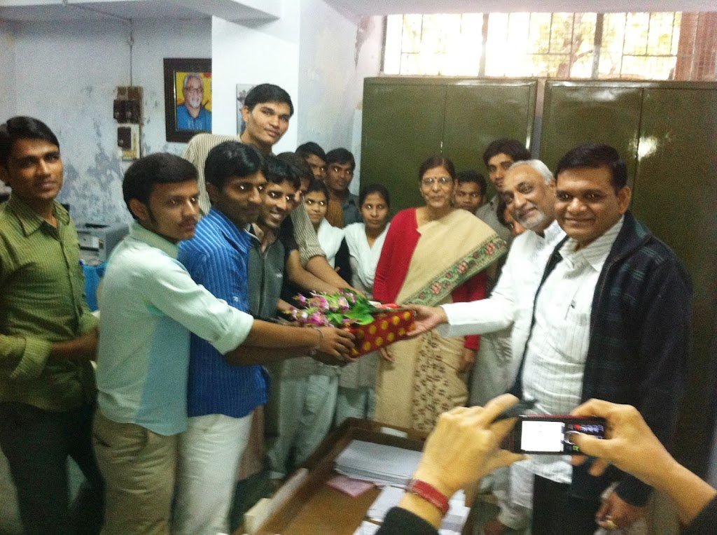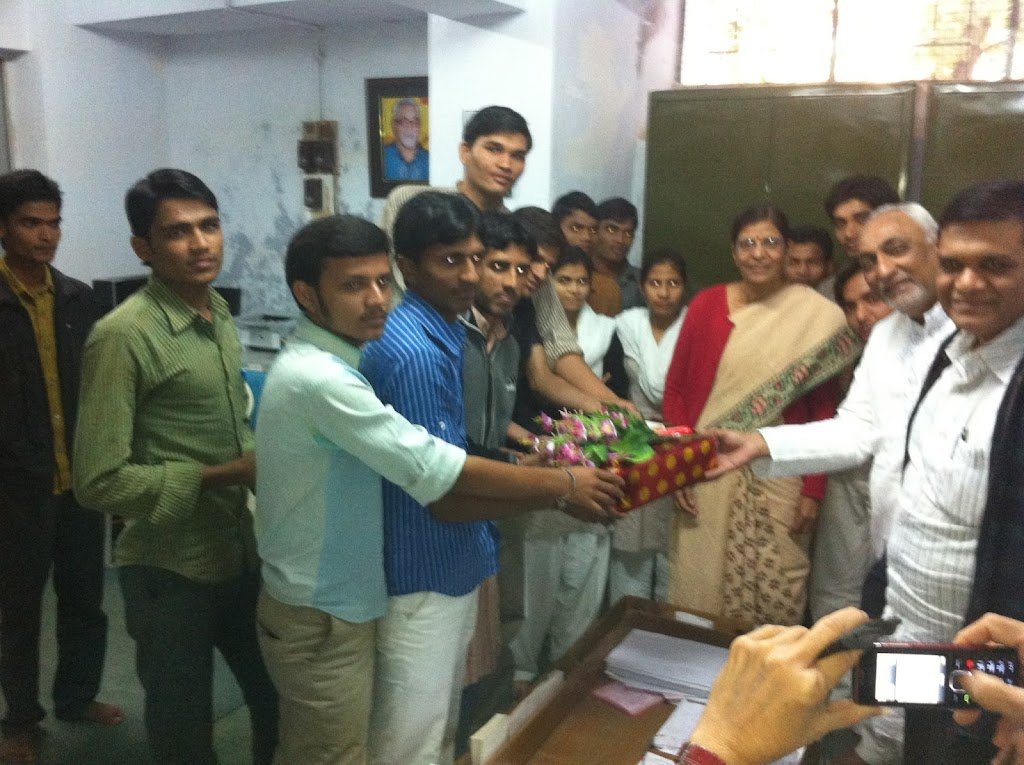 ૫ જાન્યુઆરીના રોજ ઇતિહાસ અને સંસ્કૃતિ વિભાગના અધ્યક્ષ પ્રોફે. મહેબૂબ દેસાઈના જન્મ દિવસની ઉજવણી પ્રસંગે વિભાગના વિદ્યાર્થીઓ સાથે ડૉ. મહેબૂબ દેસાઈ, પ્રા. મુંજાલ ભીમડાદકર અને ડૉ. બિંદુબહેન.